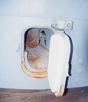 撃ち殻を砲塔外に排出する扉があります。本格的な対空戦にもなると、この周りには排出された薬莢がゴロゴロしてたことでしょう。