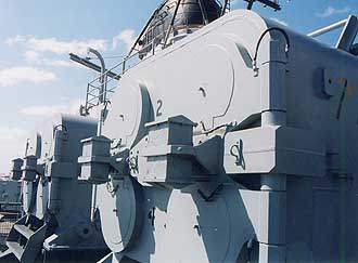 されていますが、さすがに戦艦は大きいためにここ以外にも計8基32発搭載され、この間の湾岸戦争時にはミズーリは28発発射したそうです。残念ながら、キャニスターを回り