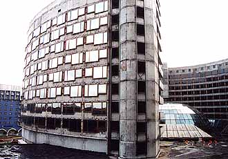 朝早く、列車はサンクト・ペテルブルグ駅に滑り込む。我々はそこから地下鉄で数駅行ったところのネバ川湖畔のホテルに辿り着いた。 なんか至る所を工事中の建物だが、部屋に入ってまたもや唖然、その窓からは10年くらい前に工事を断念した、このホテルの本館らしき建物 が、視界一杯に残骸として横たわっていた。もし完成していればそれこそヒルトン、シェラトンなどに引けを取らない大ホテルになっ ていたのだろう。仕方なく入り口に面した建物だけ何とか完成させ営業している感じだ。崩れかかった巨大なガラス張りのホールを見て、 ソ連崩壊における財政崩壊をまざまざと見せつけられた。 | ||
