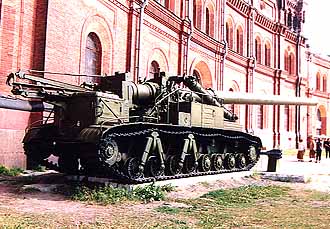 ![]() 巨大自走砲SU-310。 IS-3のコンポーネントを流用し、 1950年代に出現、核砲弾も発射できる。 |