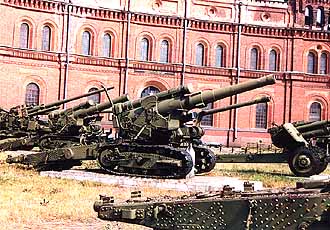 ![]() 203mm榴弾砲B4。 「のらくろ」の世界に出てきそうな スタイルである。 |