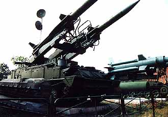 ![]() 各種ミサイルもある。 SA-6ゲインフルだがなぜか 真ん中の一発が無くて様にならない。 |